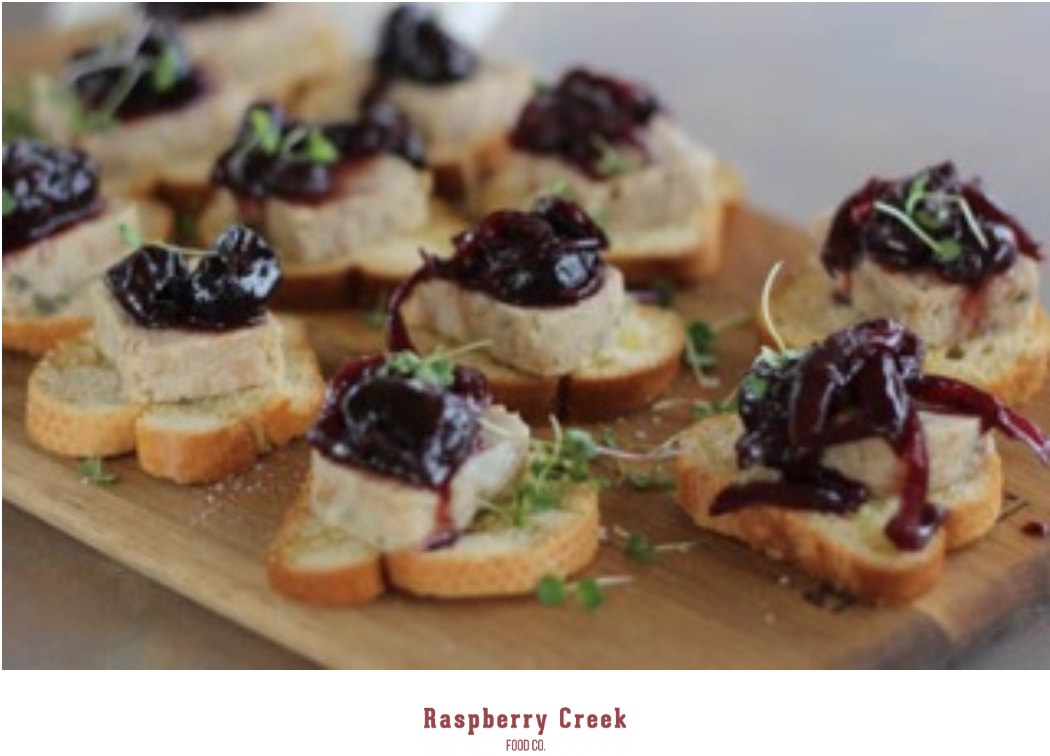 Goose Rillette with Cherry Compote, Summer Salad, and Garlic Toasts: